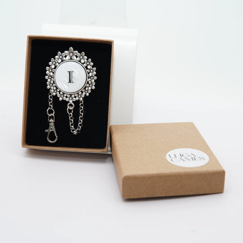 Pasador sujeta-pañuelo plateado ovalado con inicial